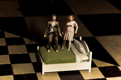 Hole in the Wall is a contemporary love adventure. Highly visual and experiential, the performance is built around four moveable rooms that house the audience and move through the space to reveal fragments of a love story.