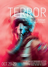 A plane from Berlin to Munich is hijacked by terrorists and being flown towards a packed football stadium where Germany is playing England. Major Lars Koch, fighter jet pilot for the German Federal Forces, has to react. Ignoring orders to the contrary, he takes matters into his own hands and shoots down the plane, killing all on board. As a result, he is charged with murder. The play begins in the courtroom with his trial. The audience listens to the evidence presented by lawyers and witnesses and then votes on whether Major Koch is guilty or not guilty.